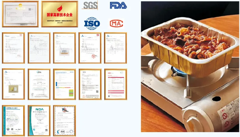 合箔乐已通过多项权威认证,食品接触安全有保障。采用先进的铝箔表面涂层处理工艺,成功解决铝箔表面氧化难题,全新升级的金属铝箔餐盒,可放在微波炉、烤箱中加热,也可用明火直接加热,安全可靠。